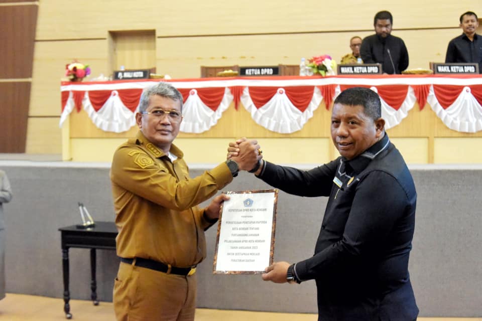 Diakhir acara, Pj Wali Kota Kendari bersama Ketua DPRD Kota Kendari menandatangani berita acara persetujuan bersama, kemudian dilanjutkan dengan penyerahan keputusan DPRD Kota Kendari yang diserahkan secara langsung oleh Ketua DPRD Kota Kendari kepada Pj Wali Kota Kendari.
