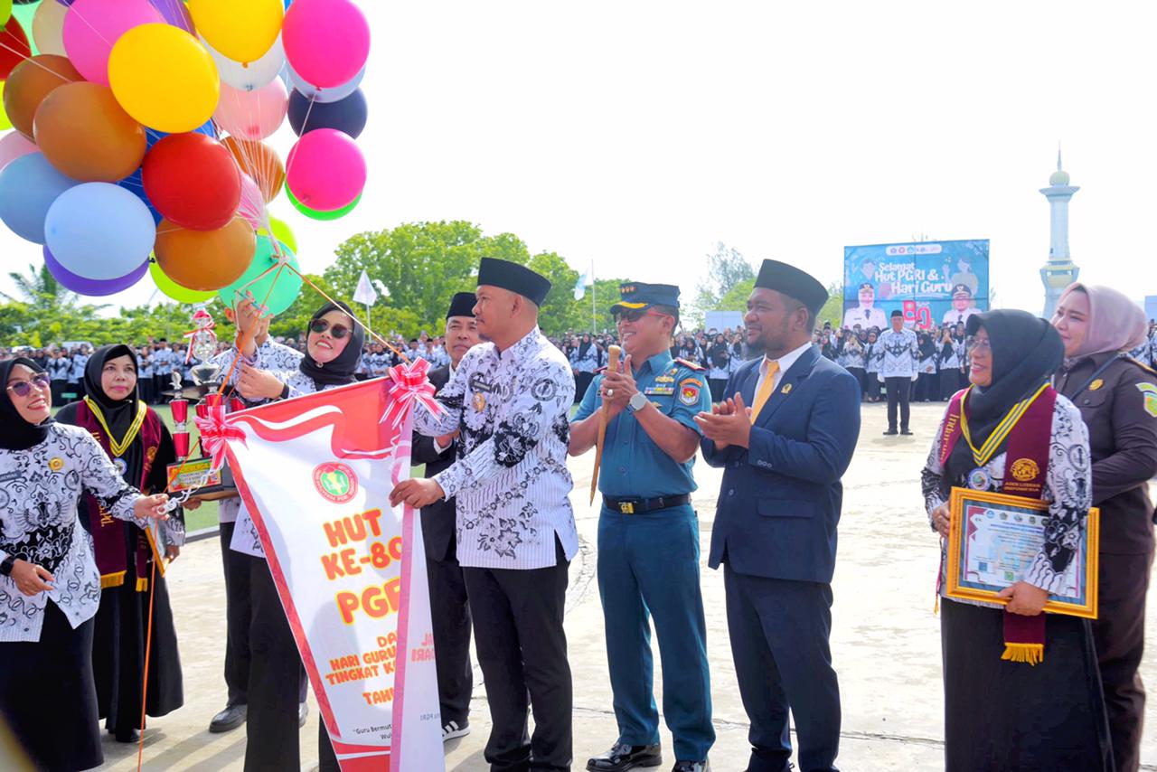 Kendari — Wali Kota Kendari, dr. Hj. Siska Karina Imran, SKM, memimpin Upacara Puncak Hari Ulang Tahun (HUT) ke-80 Persatuan Guru Republik Indonesia (PGRI) yang dirangkaikan dengan peringatan Hari Guru Nasional (HGN) 2025. Upacara berlangsung khidmat dan meriah di Lapangan Balai Kota Kendari, Selasa (25/11/2025), dengan dihadiri para pimpinan daerah, tenaga pendidik, siswa, dan tamu undangan.