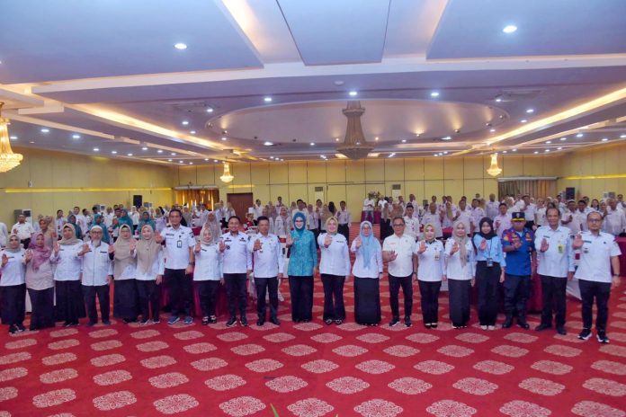Dalam sambutannya, Wali Kota memaparkan perkembangan prevalensi stunting berdasarkan dua sumber data utama, yakni Survei Kesehatan Indonesia (SKI) dan Elektronik Pencatatan dan Pelaporan Gizi Berbasis Masyarakat (EPPGBM). Berdasarkan SKI, prevalensi stunting turun dari 25,7 persen pada 2023 menjadi 24,4 persen pada 2024. Sementara data EPPGBM per September 2025 menunjukkan prevalensi stunting jauh lebih rendah, yakni berada pada angka 1,82 persen.